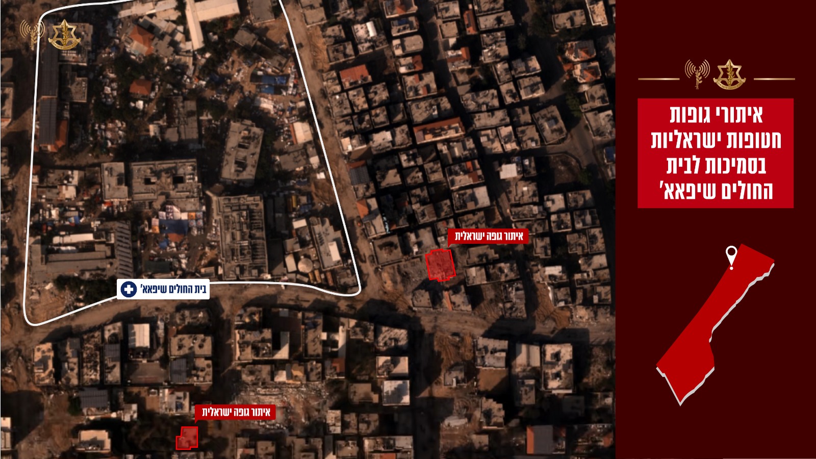 To provide a comprehensive overview of the situation, the IDF has released an infographic illustrating the locations near the Shifa complex where the bodies of the hostages, identified as Yehudit Weiss and Cpl. Noa Marciano, were discovered several days prior.