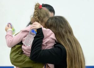 Yoni Asher, whose wife and two young daughters were abducted to Gaza, joyously reunited with his family on Friday.