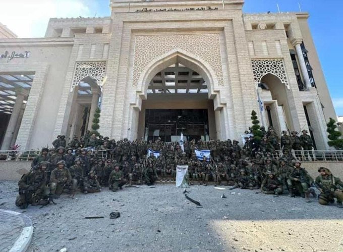 Last month, IDF soldiers took a victory photo in front of the courthouse after conquering the area.