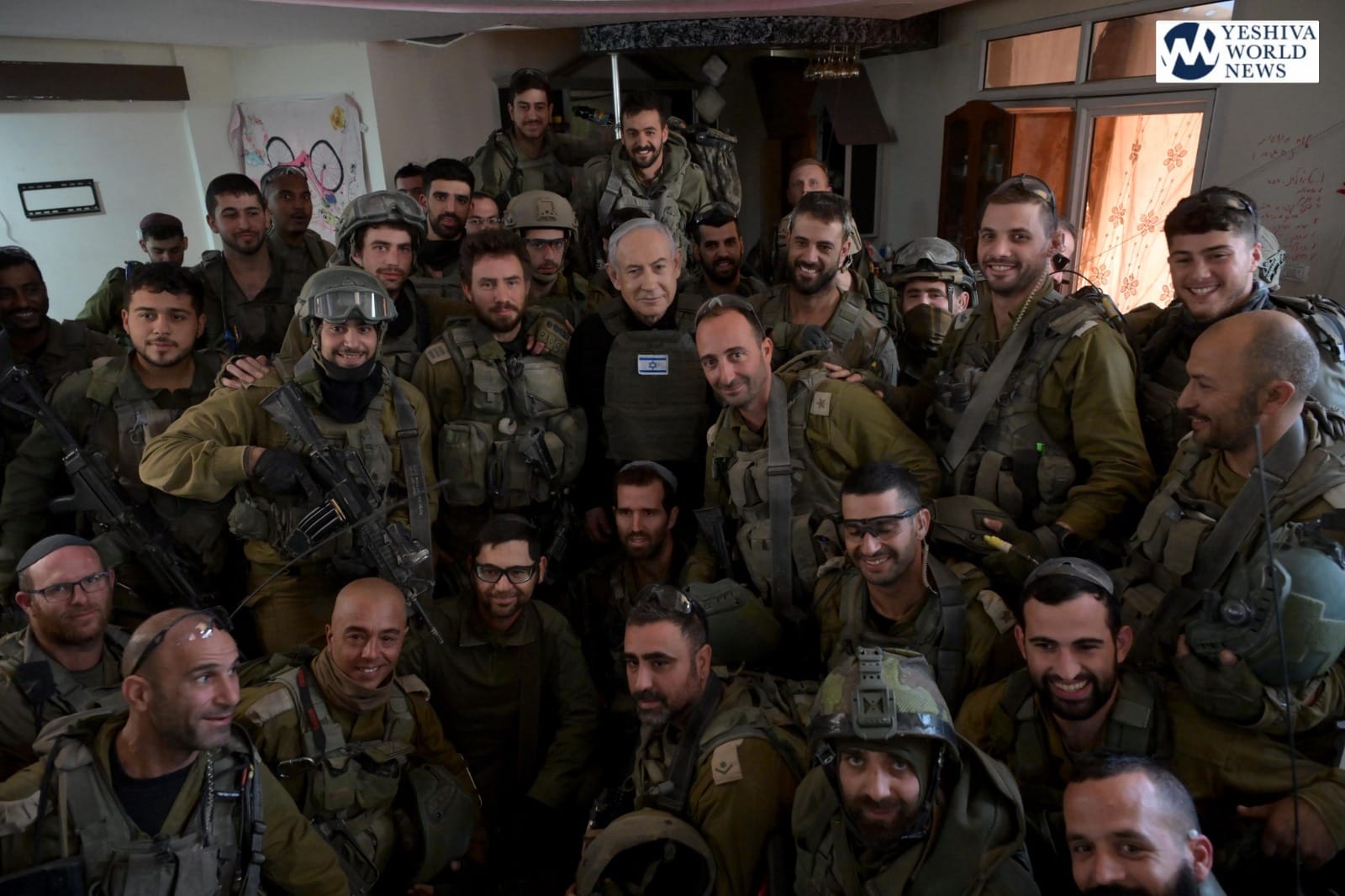 Israeli Prime Minister Benjamin Netanyahu on Monday visited the northern Gaza Strip, accompanied by IDF Deputy Chief-of-Staff Maj.-Gen. Amir Baram, as well as his Chief of Staff, Tzachi Braverman, and his Military Secretary, Maj.-Gen. Avi Gil. During his visit, Netanyahu received detailed briefings from the Commander of the 261st Brigade, Col. Yehuda Wach, and other military officials on the ongoing operations in the region, and was informed about the extensive enemy war material and tunnel shafts found in home and other civilian areas.