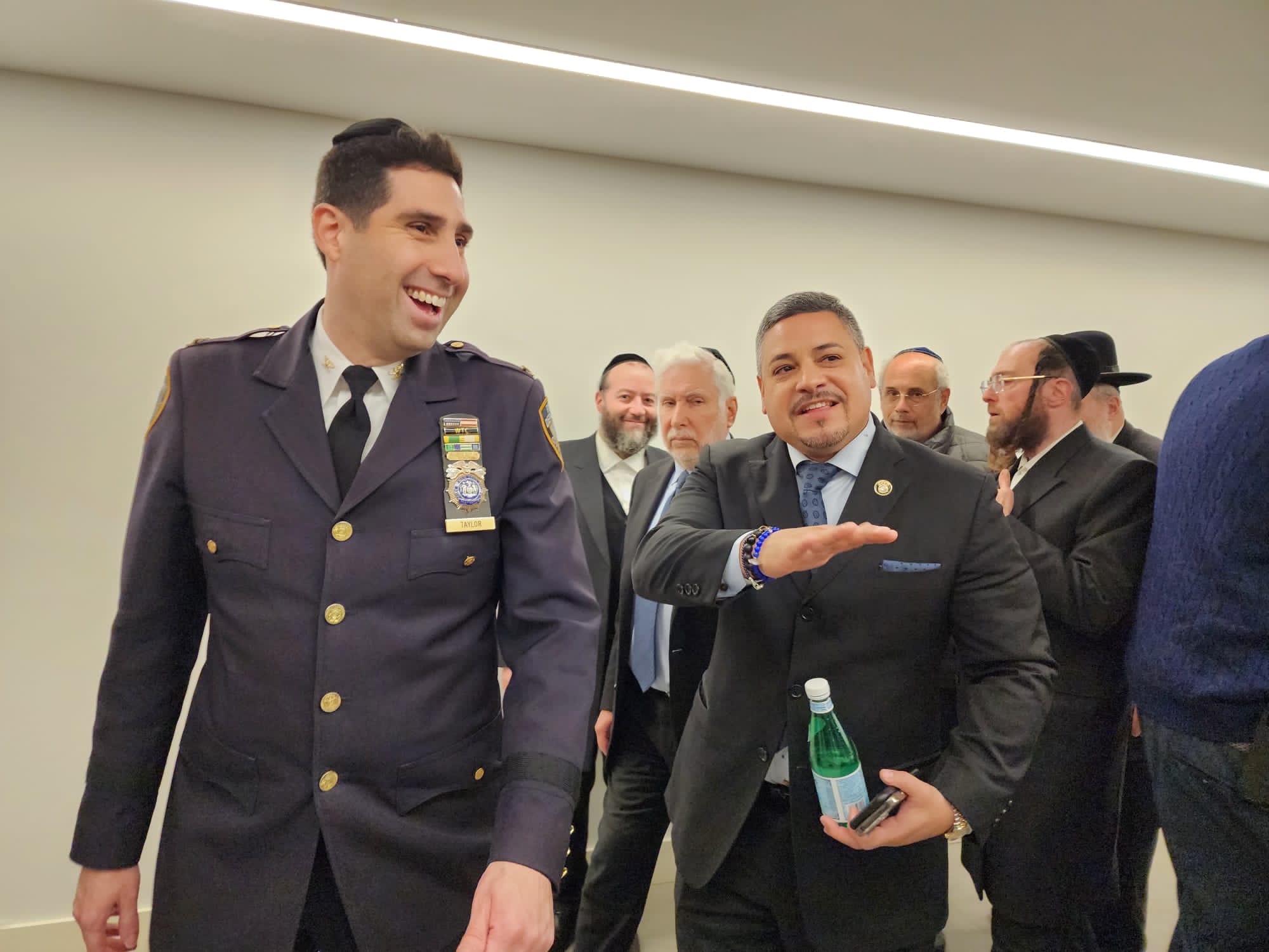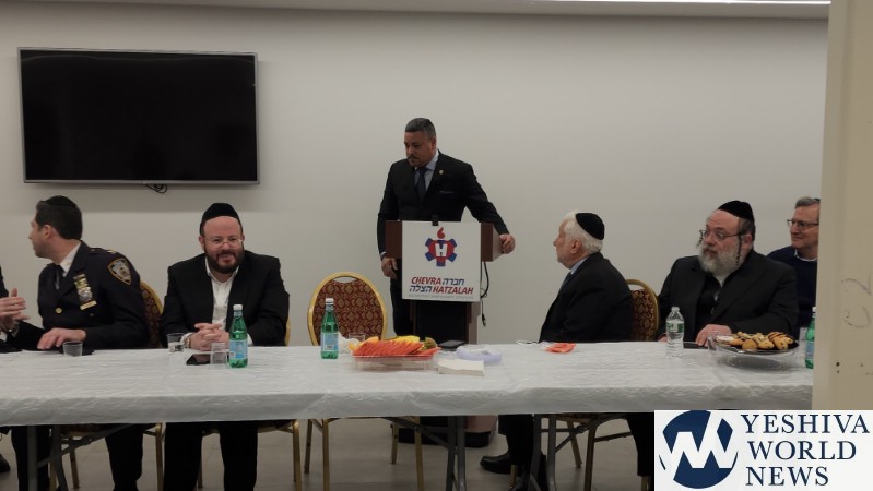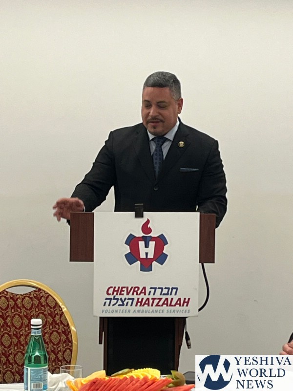 In his eloquent remarks, Commissioner Caban acknowledged that Hatzalah responds to over 70,000 calls a year and how much that helps alleviate City resources. Commissioner Caban thanked each Hatzalah coordinator who was there and acknowledged Senior Advisor to Mayor Eric Adams, Joel Eisdorfer, whom he called a great partner in the Mayor’s Office. Commissioner Caban acknowledged NYPD Clergy Liaison Rabbi Abe Friedman for his friendship and for showing him the incredible work that Hatzalah does over the past many years. Commissioner Caban referred to NYPD Inspector Richie Taylor as a superhero in everyone’s eyes, who everyone loves, who goes above and beyond for the Jewish community and all communities.