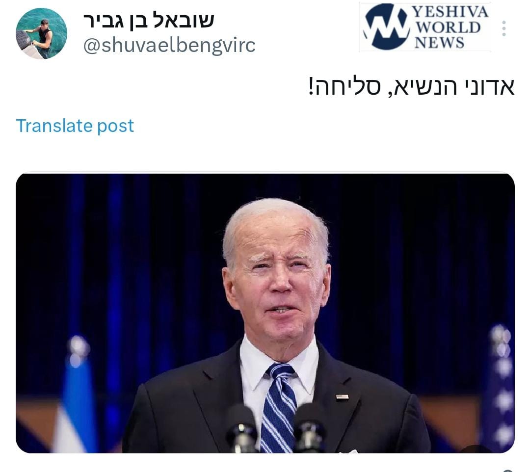 Shortly after his father’s apology, Shuvael Ben Gvir also took to Twitter to offer his own apology to President Biden, posting a picture of the president with the caption, “Mr. President, sorry!”
