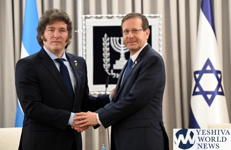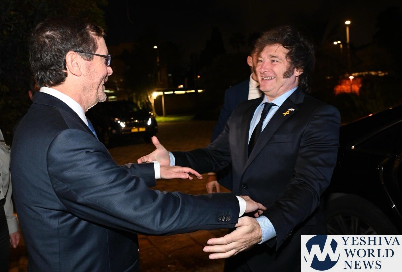 On Tuesday night, Israel President Isaac Herzog met with President Milei at his residence in Jerusalem. President Herzog welcomed President Milei on his arrival at the President’s Residence, followed by the playing of both nations’ national anthems.