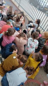 Gan children in Tzfas crouch on the ground as the sirens blare. (Kan News)