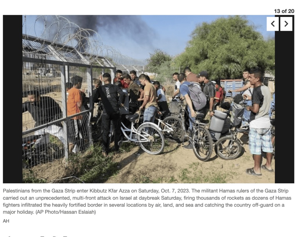 It also lists the names of four photographers whose images were purchased by AP, stating that they are “known Hamas associates who were gleefully embedded with the Hamas terrorists during the October 7th attacks.”