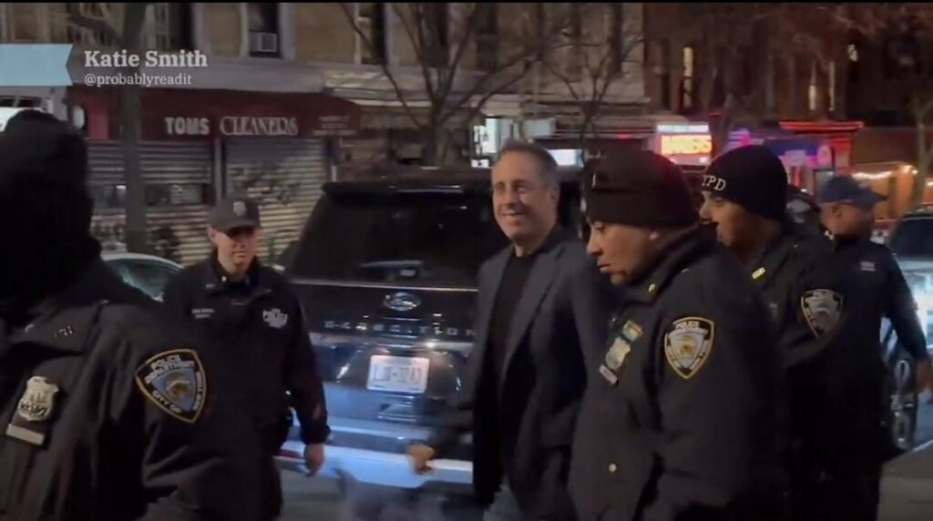 The New York Police Department had a heavy presence on hand to ensure Seinfeld’s safe departure, and arrested two individuals over the course of the event and ensuing protest.