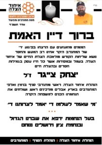 HaRav Zeiger, z’l, a resident of the yishuv of Psagot for 30 years, was a husband, father of three, grandfather of two, and a volunteer for ZAKA, United Hatzalah, Israel Police, and many other organizations.