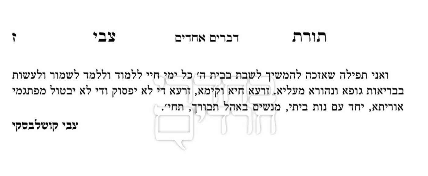 B’Chadrei Chareidim reported that since his second marriage, HaRav Kushelevsky has signed his sefarim with a tefillah that he be zocheh [among other things] to zera chaya v’kayamah.