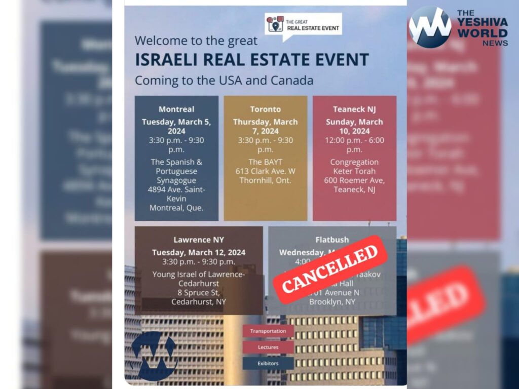 An Israel real estate sales event that was scheduled to take place at the Shul on Avenue N and East 27 Street will not take place tomorrow at this location. The event had triggered a planned protest outside the shul.