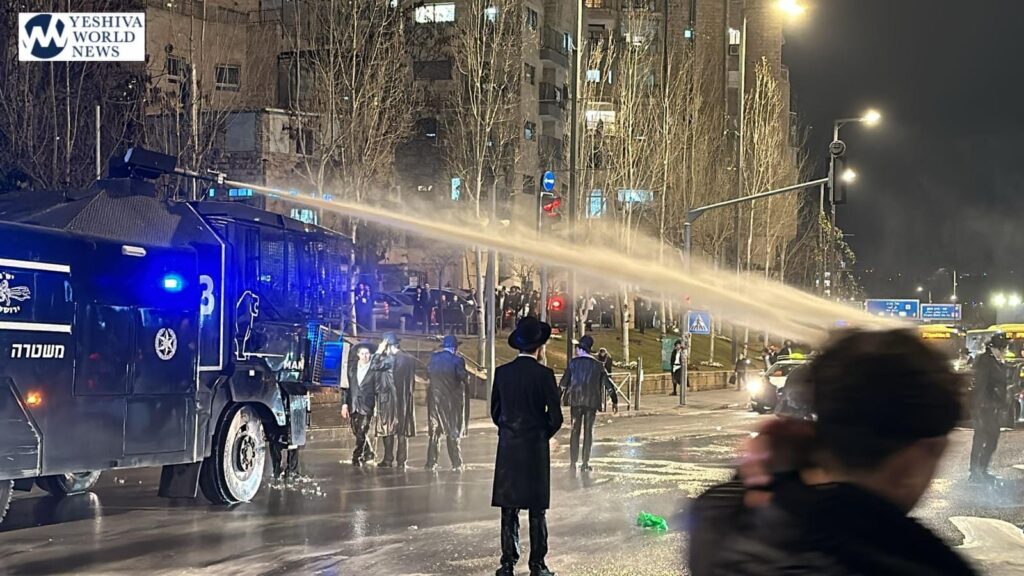 Dozens of Charedim from Peleg blocked the tracks of the Jerusalem light rail on Jaffa Street and scuffled with police on Monday to protest efforts to end Charedi military draft exemptions.