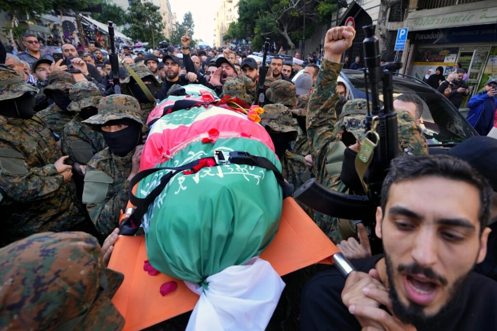 “We decided to join (the battle) as a national, religious and moral duty. We did that to defend our land and villages,” Takkoush told The Associated Press at his group’s headquarters in Beirut. “We also did so in support of our brothers in Gaza,” where he said Israel was committing an “open massacre.”