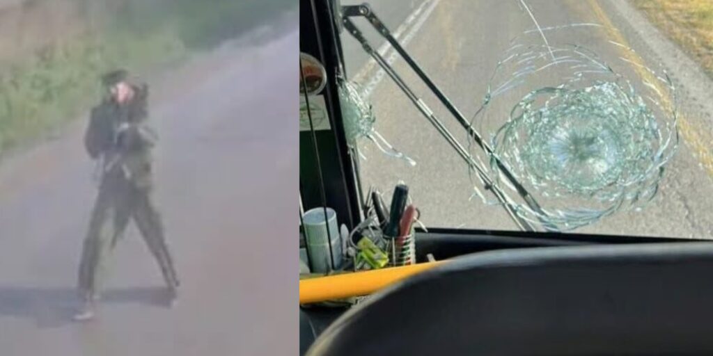 The moment that the bus was hit by bullets can be seen below: The children on the bus initially thought that Arabs threw rocks at the bus and can be heard responding to the bus driver who asked: “What was that?”