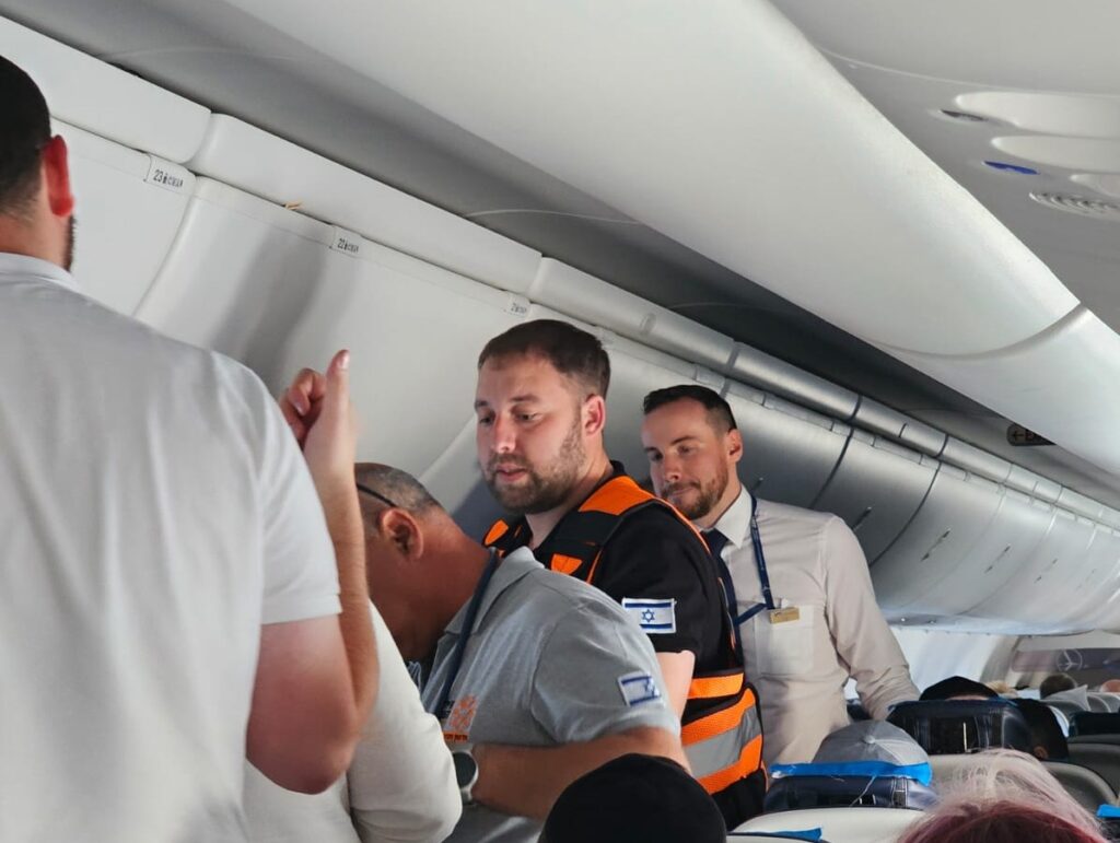 “During the flight, one of the passengers felt unwell and lost consciousness for a short amount of time,” said United Hatzalah paramedic Gal Mazor. “We provided initial treatment and stabilized his condition.”