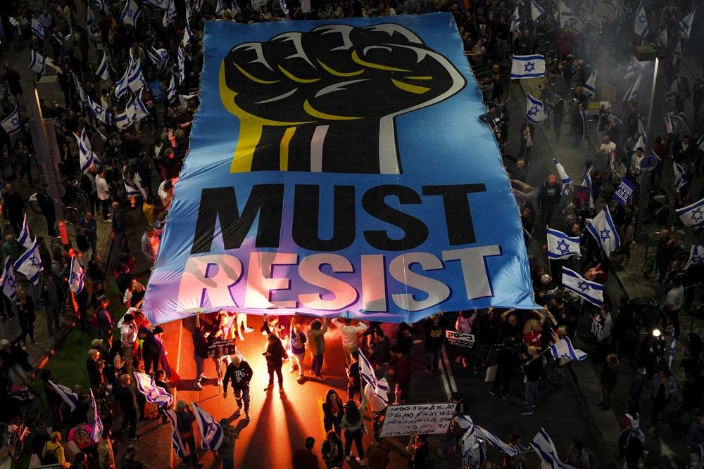 Israelis protest against Prime Minister Benjamin Netanyahu's government in Tel Aviv, Israel. Saturday, March 4, 2023. (AP Photo/Tsafrir Abayov)