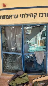 Three missiles and explosive drones fired by Hezbollah hit a community center and a car in the Bedouin village of al-Aramshe in the western Galil early Wednesday afternoon, injuring 18 people.