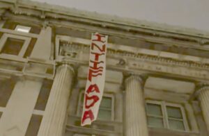 They then “reclaimed” the building as “Hind’s Hall” in honor of Hind Rajab, a six-year-old girl from Gaza and unfurled Palestinian flags from the windows along with banners reading ‘Intifada” and “Gaza Falls, Columbia Falls.”
