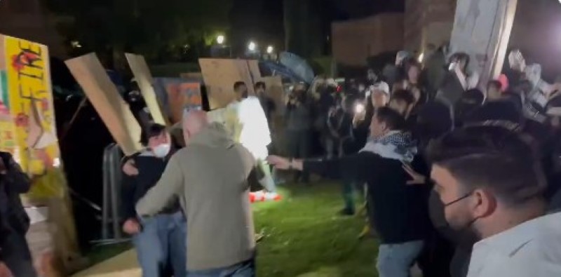 Violent brawls broke out on the campus of the University of California campus in Los Angeles late Tuesday night as Israel supporters faced off against pro-Hamas antisemites.