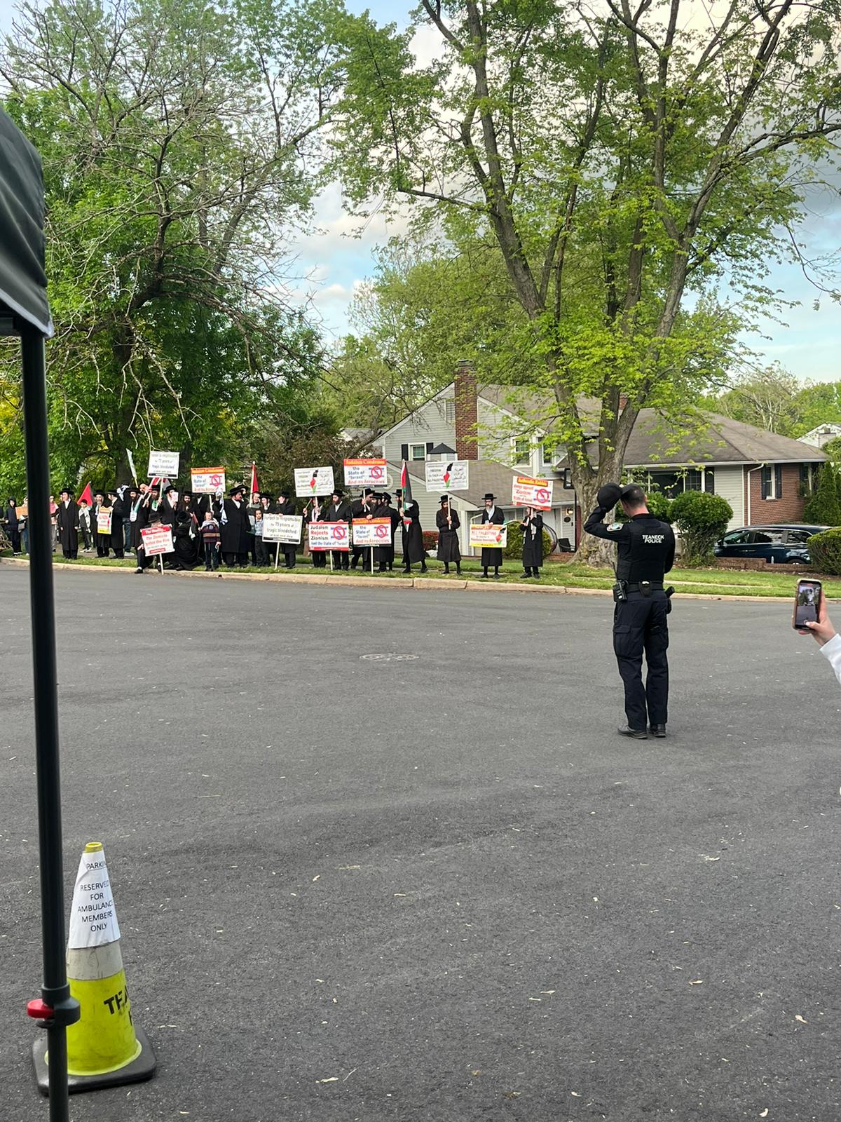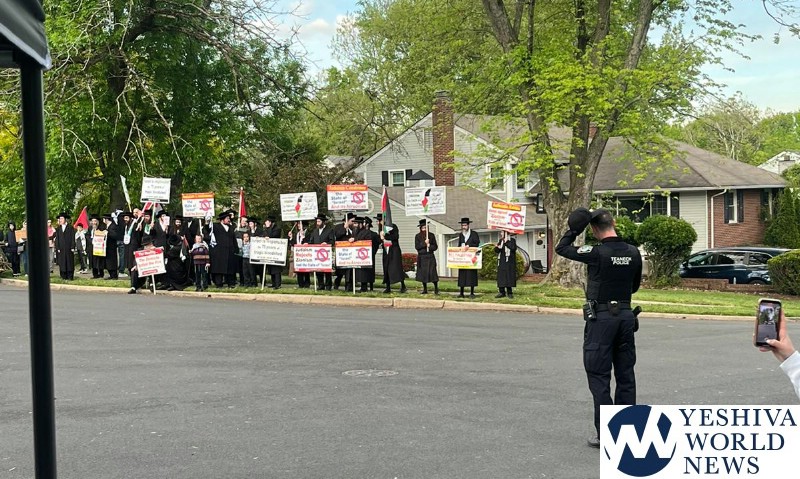 Meanwhile, outside, a creative neighbor took matters into his own hands, turning on his lawn sprinklers to soak the protesting Neturei Karta members. The unexpected shower seemed to cause some discomfort among the protesters, who were likely unprepared for the impromptu soaking.