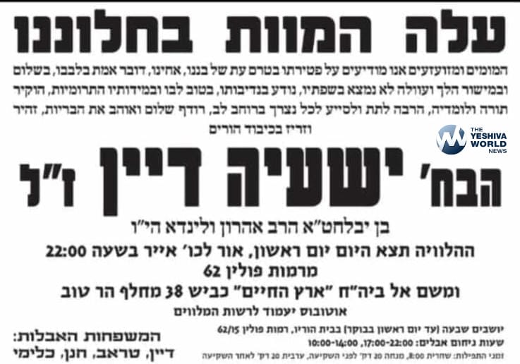 Dayan’s family subsequently arranged for the body to be repatriated to Israel for Kevurah, with the Levaya taking place on Sunday in Beit Shemesh.
