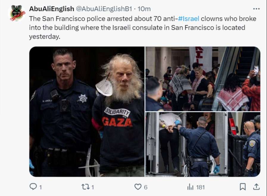 San Francisco police arrested about 70 pro-Hamas rioters on Monday on trespassing charges after they “occupied” the lobby of the building housing the Israeli consulate.