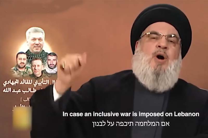 Hezbollah published a video overnight Motzei Shabbos of Hezbollah leader Hassan Nasrallah threatening [with English and Hebrew subtitles] that if a full-scale war “is imposed on Lebanon,” Hezbollah “will fight Israel without rules, restraints, or limits.”
