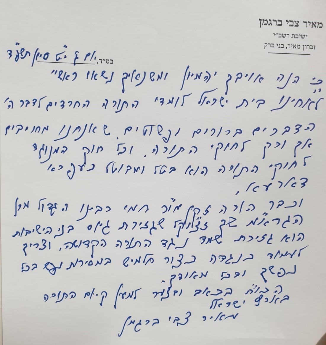 “Writing and signing with pain and tza’ar for the kiyum of Torah in Eretz Yisrael,” HaRav Bergman concluded the letter.