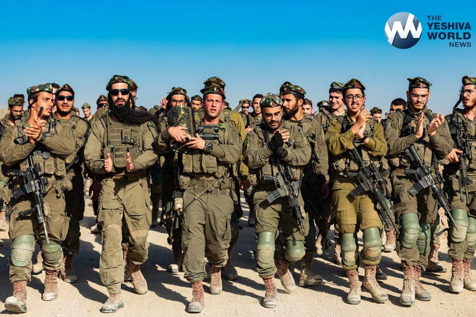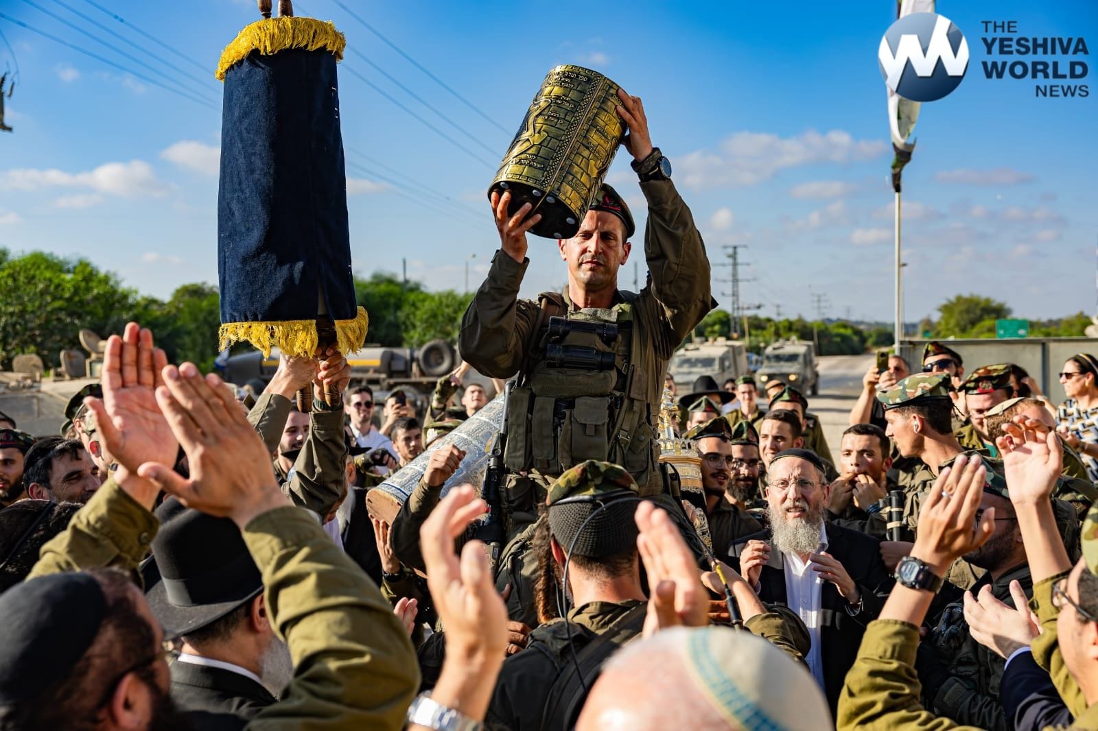 Hundreds of soldiers from the Netzach Yehudah battalion who fought in Gaza participated in a joyous Hachnasas Sefer Torah on Tuesday, marching from the Gazan border to the shul at the Erez base.