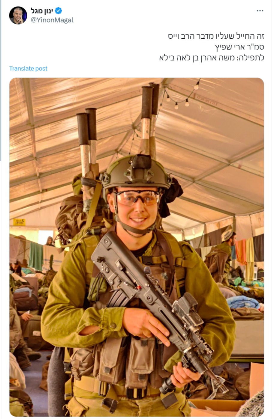 Channel 14 News journalist Yinon Magal later tweeted the video of Rav Weiss and identified the soldier as Ari Spitz. Someone else posted a video of Ari making a bracha at his friend’s wedding, as seen below.
