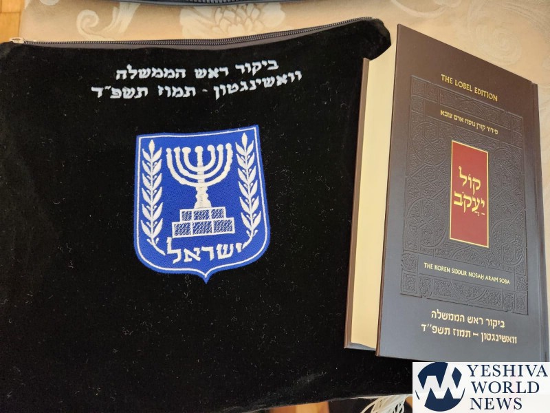Bchadrei Charedim also reported that the Cabinet Secretary, Yossi Fuchs, led Kabbalas Shabbos, and members of the Israeli delegation were provided with an ornate siddur inscribed with “Prime Minister’s Visit to Washington, Tammuz 5784,” as well as a luxurious tallis bag, donated by one of the participants.