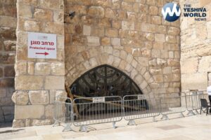 The stone fell from the wall of the Machkama building, built about 700 years ago and currently used as a Border Police station that faces the Kosel plaza. A preliminary examination found that a leak in the roof of the building caused pressure on the stones and the bonding material between them, causing the stone to shift out of place and fall.