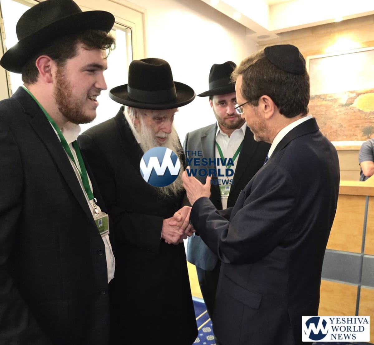Hagaon HaRav Aharon Feldman, the Rosh Yeshiva of Ner Yisroel, and member of the Moetzes Gedolei Hatorah of Agudas Yisroel of America, met today with Israeli President Herzog.