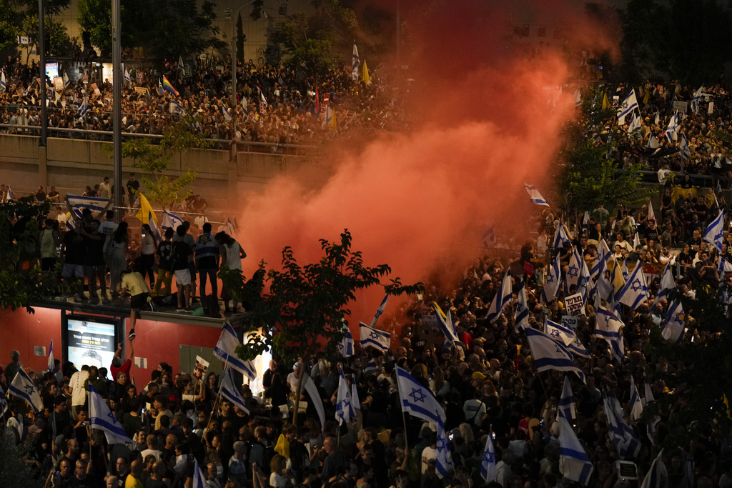 Israel’s largest trade union, the Histadrut, further pressured the government by calling a general strike for Monday, the first since the Oct. 7 Hamas attack that started the war. It aims to shut down or disrupt major sectors of the economy, including banking, health care and the country’s main airport – although the airport has not confirmed that it will go along with the strike.