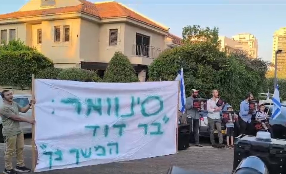 Members of the Religious Zionist Noam party protested outside the home of Bar-David on Monday morning, chanting: “Political strikes aid Hamas!” and waving signs stating: “Sinwar, Bar-David is your continuation.”