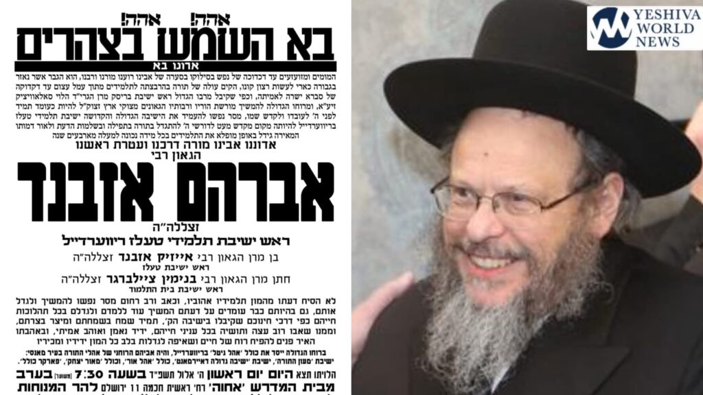 The levaya in Eretz Yisroel of Hagaon Harav Avremel Ausband zt”l, the rosh yeshiva of Yeshivas Telshe-Riverdale, will held on Sunday afternoon.
