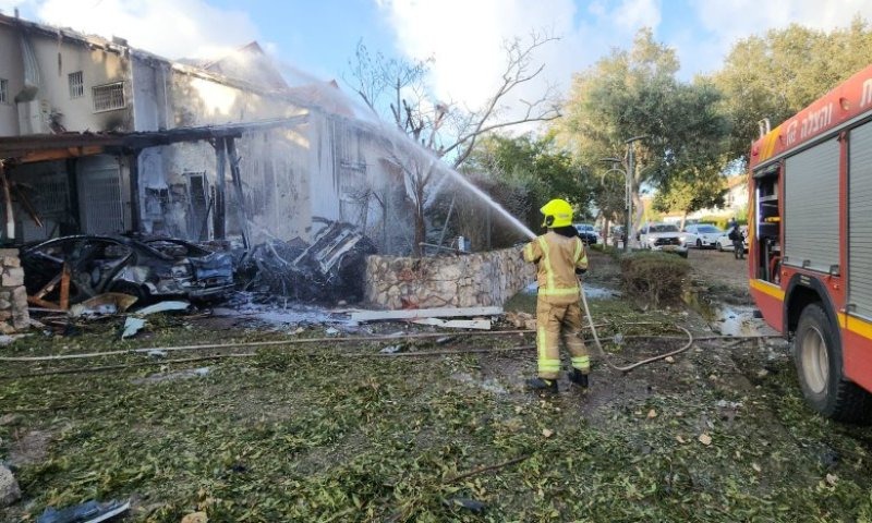 Extinguishing the fire in Moreshet. (Israel Fire and Rescue Services)These rocket impacts ignited multiple fires, and Israel Fire and Rescue Services are currently working to extinguish them.