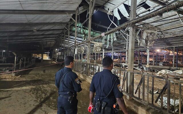 Earlier, between 4:48 and 5:10 AM, 20 rockets were fired from Lebanon toward the Jezreel Valley. Most of these projectiles were intercepted, with the remainder landing in open areas. Large shrapnel fragments from interceptor missiles fell in the area, lightly injuring a man, and causing physical damage. A dairy farm in Beit She’arim sustained a direct hit, killing 25 cows and causing significiant damage to the facility.