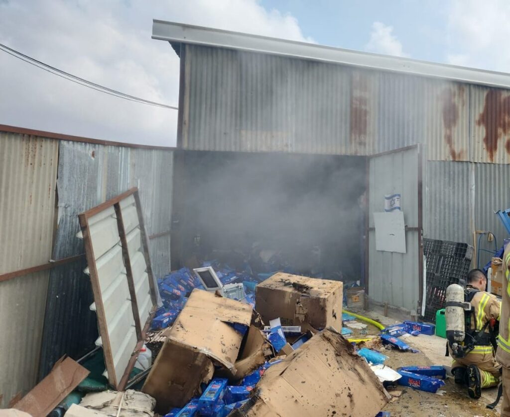 The rocket hit caused a fire to break out in an adjacent storage room: