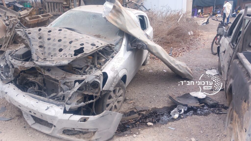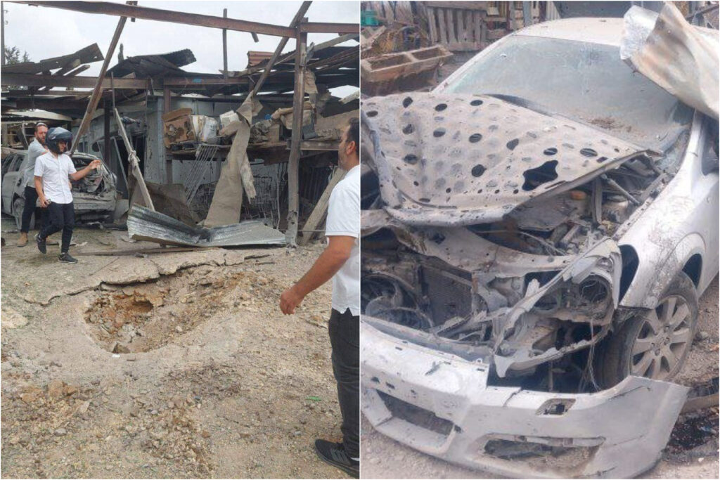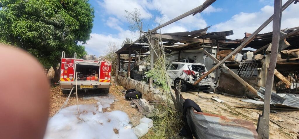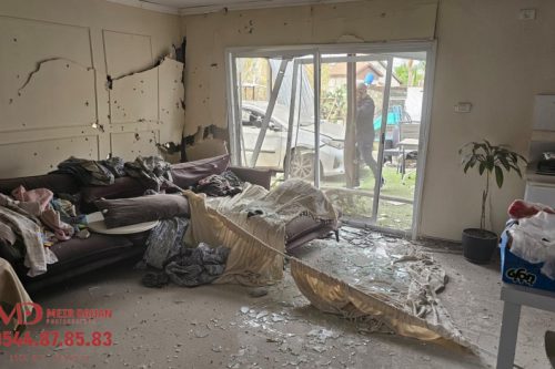Shrapnel from an interceptor missile fell in an open area in Holon and on a house Kfar Chabad, lightly injuring two women. The women, both in their 30s, were treated by MDA paramedics and evacuated to Assaf HaRofeh Hospital in Be’er Yaakov in good condition. The house, which is next to the Beis Menachem shul where many of the residents daven, sustained serious damage. The extent of the damage, seen in the videos and photos below, testify to the incredible neis that only two people were lightly injured in the attack.
