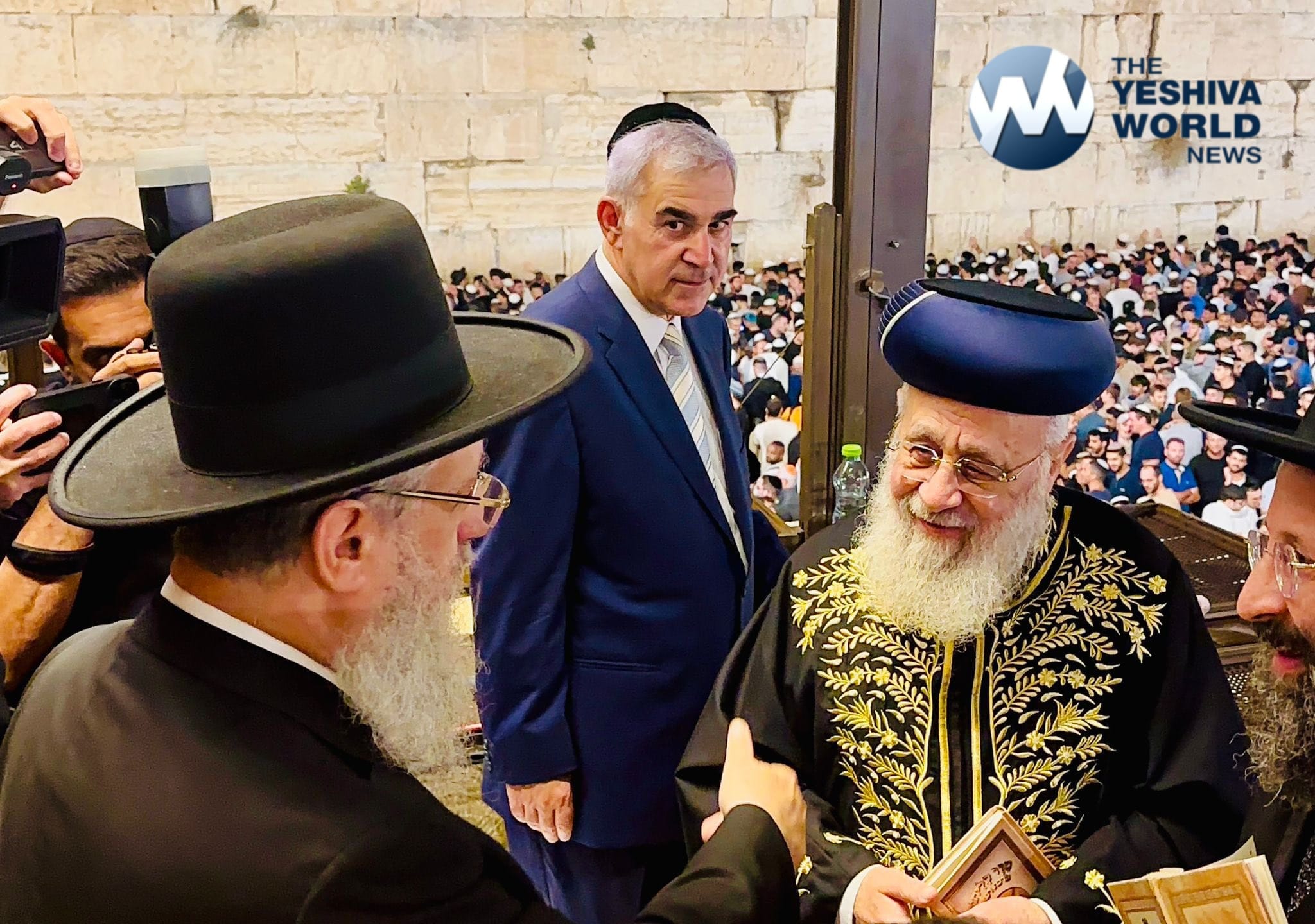 In a touching display of brotherly love, HaGaon HaRav Yitzchak Yosef, the outgoing Sephardic Chief Rabbi of Israel, was seen greeting his brother, HaGaon HaRav David Yosef, who is the incoming Sephardic Chief Rabbi. Their embrace, surrounded by the din of thousands of tefillos, captured the spirit of achdus that transcended the evening.
