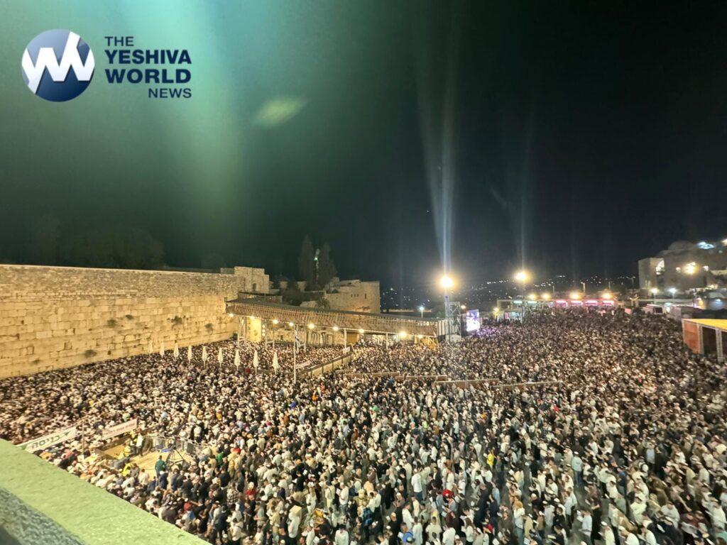 Tens of thousands of Jews from all walks of life filled the heavily secured Kosel Plaza tonight to recite the final Selichos before Yom Kippur. The emotionally charged atmosphere was palpable as mispallelim gathered in throngs, united in pleading with Hashem for forgiveness and a happy year ahead.