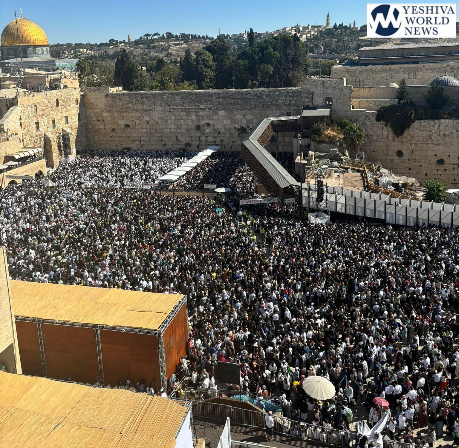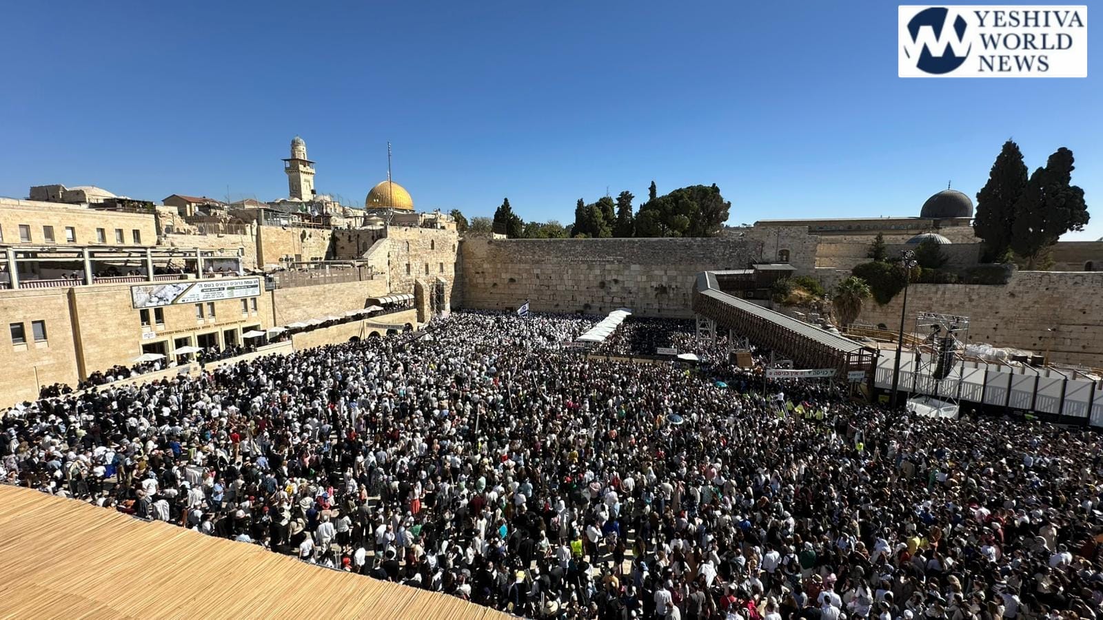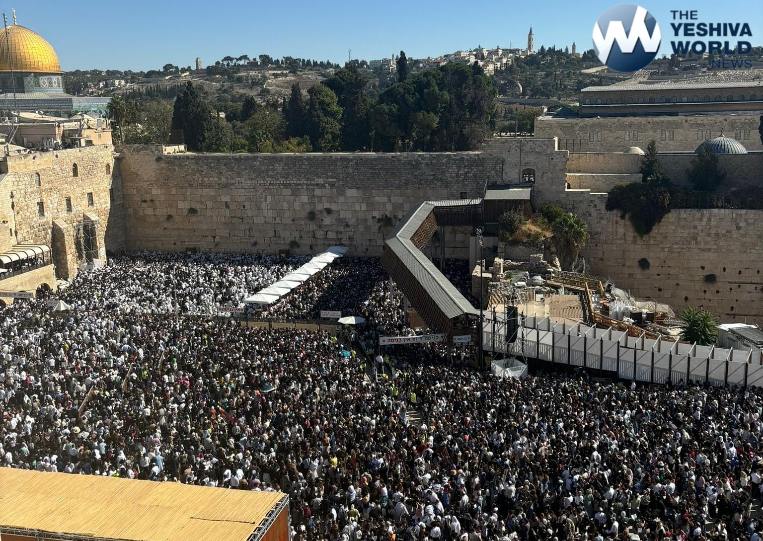Although tens of thousands of Jews participated in the tefillah, photos of the Kosel from afar show a noticeably smaller crowd than past years.