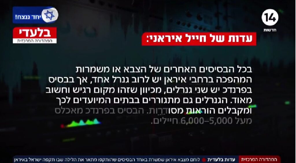 The soldier described the strategic importance of the Iranian base attacked by Israel about two weeks ago. “There is only one general on all the other army or IRGC bases throughout Iran, but this base has two generals because it is a sensitive and very important place. The generals also live in designated barracks and receive organized orders. It houses over 5,000–6,000 soldiers.”