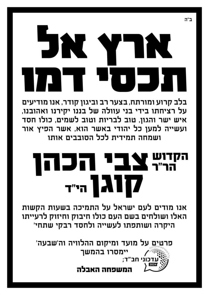 The Prime Minister’s Office and the Foreign Ministry issued a joint statement saying: “The murder of Tzvi Kogan, z’l, is a heinous act of antisemitic terrorism. The State of Israel will use all means and bring to those responsible for his death to justice.”