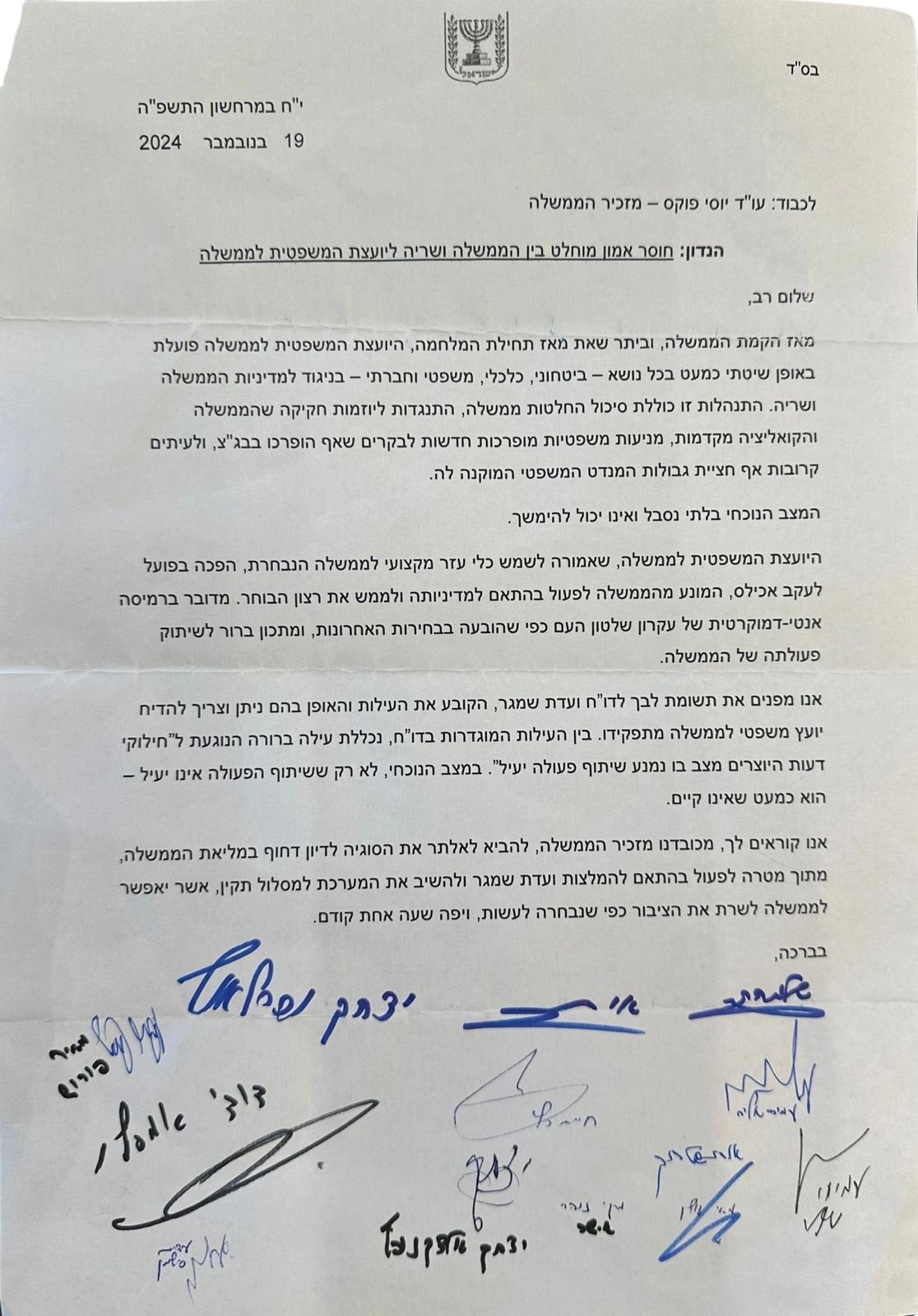 The report comes on the same day that Communications Minister Shlomo Karhi published a list of ministers who signed a letter he wrote demanding that Attorney-General Gali Baharav-Miara be ousted from her position for “systematically opposing the government and its ministers.” The letter is signed by Likud members Karhi, May Golan, Amichai Chikli, David Amsalem, Chaim Katz, Miki Zohar and Idit Silman; UTJ members Meir Porush and Yitzchak Goldknopf; and Otzma Yehudit members Itamar Ben-Gvir, Amichai Eliyahu, Orit Strook, and Yitzchak Wasserlauf.