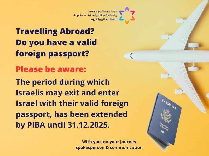 We are pleased to share that the Population Authority has announced an extension of this policy. Dual citizens will be permitted to enter and exit Israel using their foreign passports until December 31, 2025. This extension provides continued flexibility and relief for those facing challenges with Israeli passport renewals.