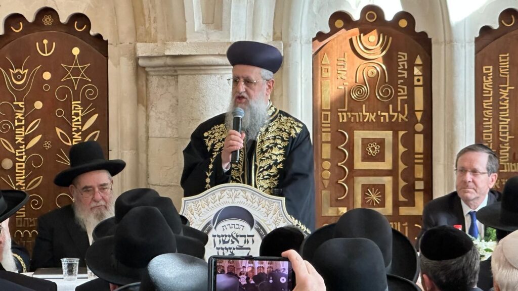 Those present at the ceremony included the new Ashkenazi Chief Rabbi, HaRav Kalman Bar, members of the Moetzet Chachmei HaTorah of Shas, HaRav Aharon Salim, HaRav Shimon Ben Shim’on, HaRav Reuven Elbaz, HaRav Shmuel Betzalel, former Chief Rabbi HaRav Shmuel Amar, HaRav Pinchas Abuchatzira, other Rabbanim, Shas Chairman Aryeh Deri, ministers, and public figures.