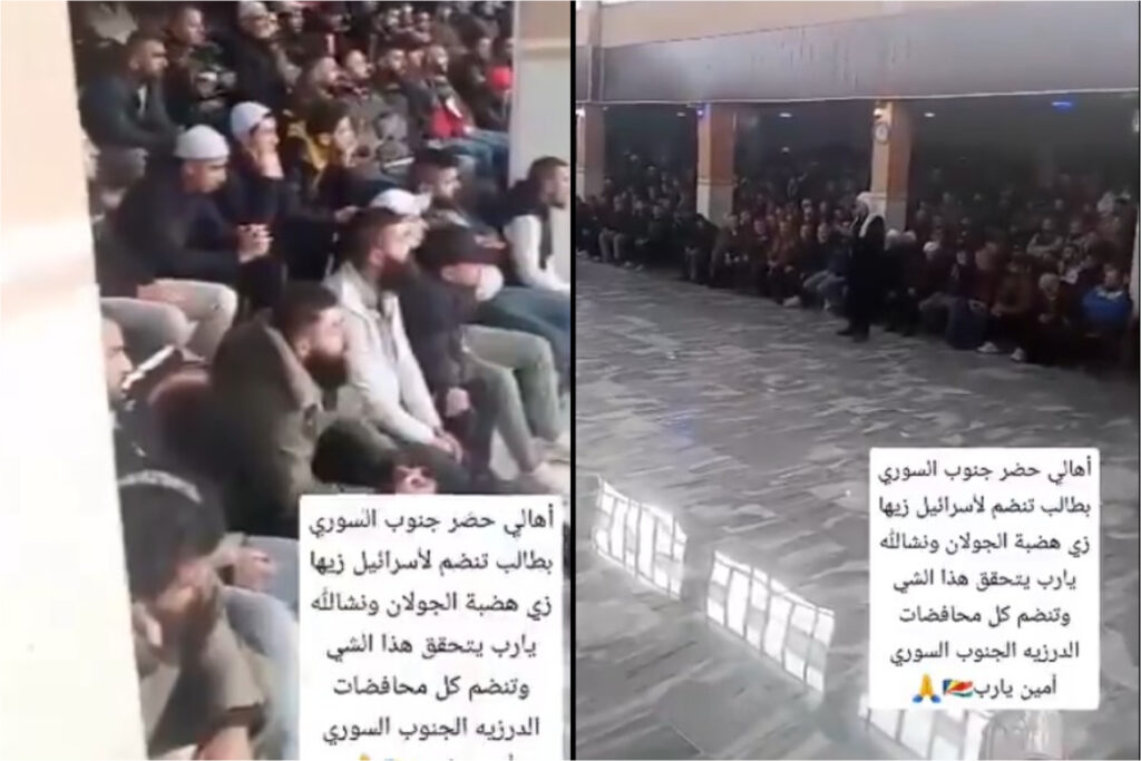 In a video of the meeting that circulated on social media, the head sheikh says that it is far better for them to be annexed to the Israeli Ramat Hagolan than to live under the rebels, and the audience yells their agreement.