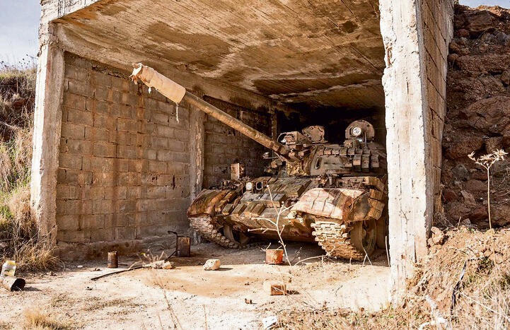 An old Soviet tank left at a Syrian army outpost on the Syrian side of the Golan.