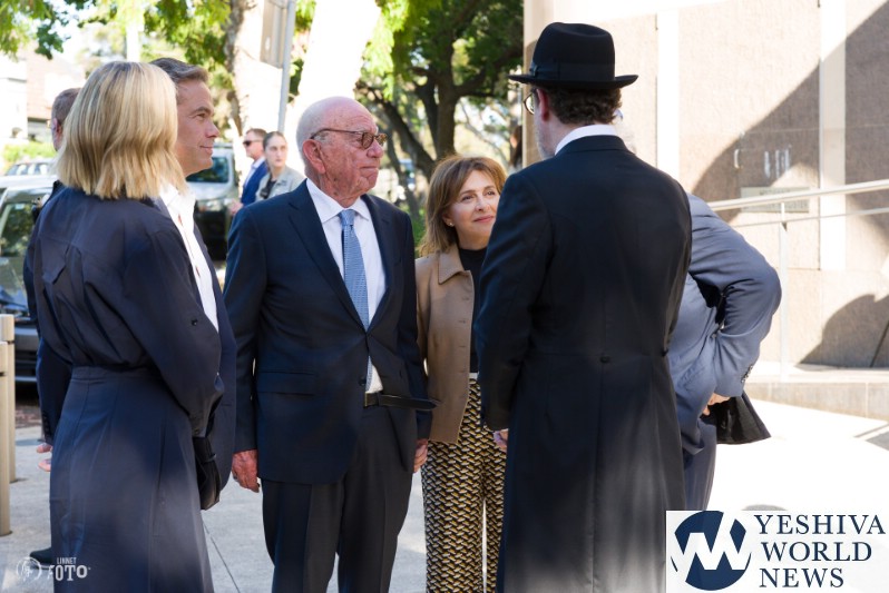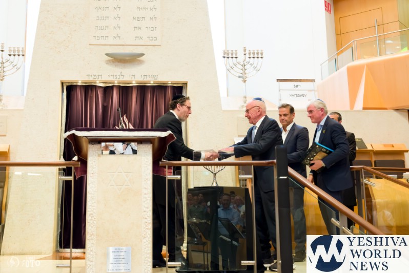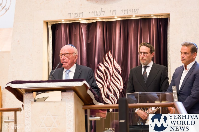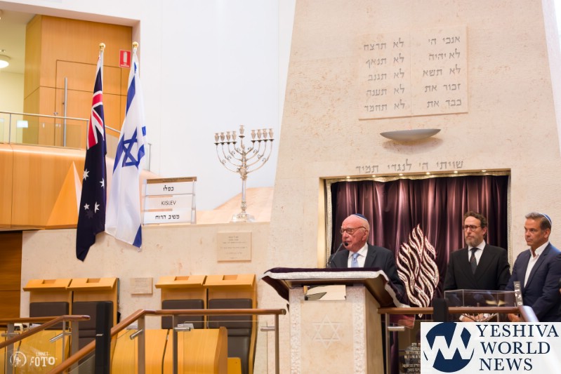 Rabbi Levi Wolff, the shul’s rabbi, introduced the Murdoch family, highlighting the importance of moral courage in an increasingly turbulent world. “Over the last 14 months, it feels like we have been living in a world that has completely gone mad,” Wolff said. “But just when I think the world has gone meshuga, I turn on Sky News Australia, and my faith in humanity is restored. There is a voice of reason that has reverberated. That voice of reason is thanks to the extraordinary man that we are honored to have here today in Mr. Rupert Murdoch and his wife, Elena.”