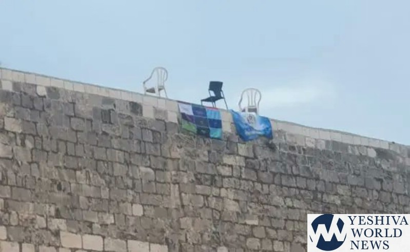 Rabbi Shmuel Rabinowitz, the Rav of the Kosel and other mekomos hakedoshim, issued a strong statement condemning the actions. “This is a painful protest against the chillul hakodesh of the Kosel, an unprecedented act by a Yid who acted contrary to halacha—both in his ascent to Har Habayis and by climbing the avanim hakedoshim of the Kosel to hang these signs,” said Rabbi Rabinowitz. “Such actions, like others recently, are against halacha and the psakim of the Chief Rabbinate.”